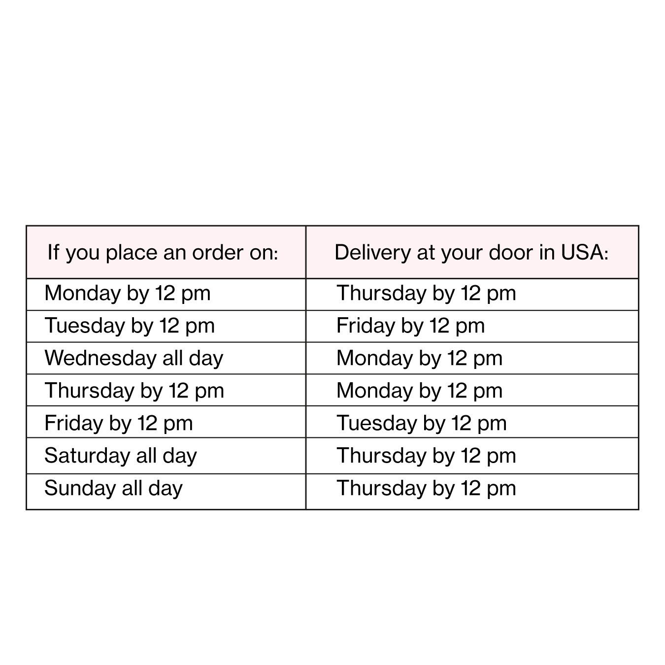 Orders processed on Saturday and Sunday will be processed on Monday.